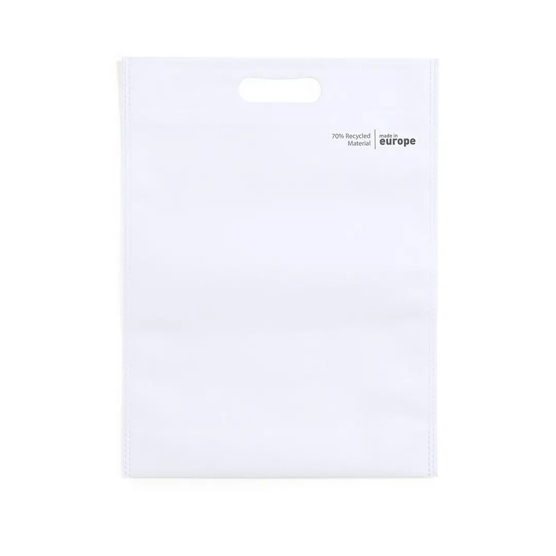 Nature line laukku, valmistettu 70g/m2 kierrätetystä kuitukankaasta. Eurooppalainen, lämpösaumattu viimeistely, palkeet pohjassa, vahvistettu stanssattu kahva ja eco/made in -merkki laukussa.