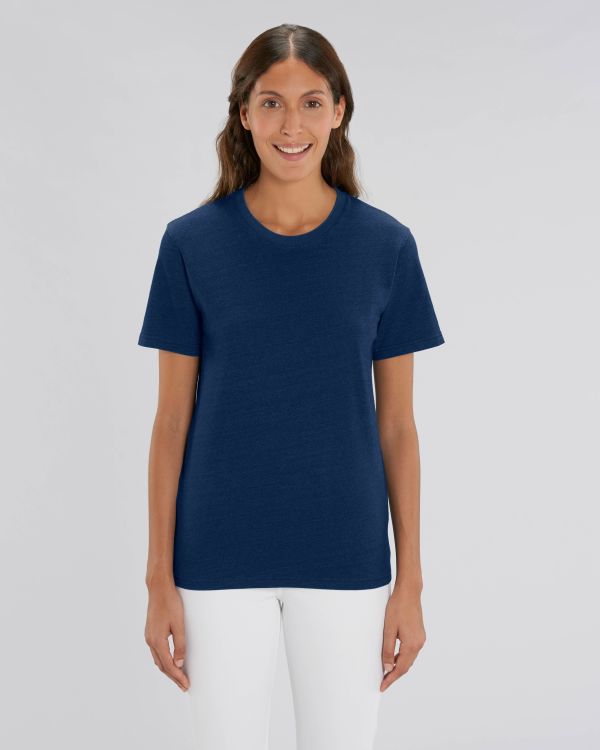 Unisex denim t-paita. Normaali istuvuus, Pyöreä pääntie, Lyhythihainen, Single jersey-neule. Mukautettu hiha 1x1 resorikaulus Pääkangas kauluksessa Leveä kaksoisommel hihansuissa ja helmassa Ahdistuneisuus kaikissa saumoissa Indigolla värjätty vaate, auto voi olla tarkkaan värjätty, jokaisen vaatteemme ulkonäkö_ voi seurata0 väriä0 tulostussuosituksia