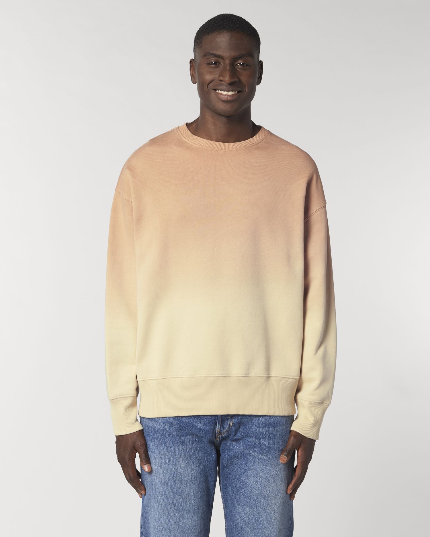 Löysä unisex-kaula-aukkoinen collegepaita dip-väripainatuksella. Löysä malli, Pyöreä pääntie, Pitkähihainen, Harjattu fleece. Kiinnitetty hiha 2x2 joustinne pääntiessä, hihansuissa ja helmassa Sisäinen kalanruoto kaulassa Sisäpuolinen puolikuu pääkankaassa Yksiommel kaulassa Kaksoisommel pääntiessä, varrella, rannekkeella, varrella, varrella ja toukokuussa. hoito-ohjeet etiketissä Lue tulostussuositukset huolellisesti